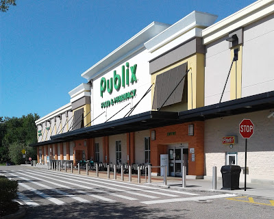 15 years ago, we'd have been looking at the side of the Albertsons building from this spot. Now, we're looking at Publix's main entrance, through which we'll pass for a quick loop around the store since we're already here: